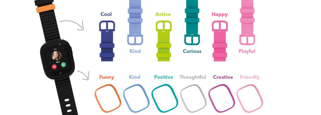 Med Xploras X6Play premium smartwatch til børn introducerer vi et helt nyt farverigt koncept, hvor børnene nemt kan Mix & Match mellem forskellige farver covers, urremme og remholdere. Hvad end dit barn har udset sig en helt unik farvekombination, eller godt kan lide at skrifte dagligt, så uret kan matche ind i dagens tøjvalg – så har det aldrig været nemmere at tilpasse sit Xplora. Hver farve symboliserer endda også noget forskelligt, så børnene kan kommunikere deres identitet og følelser gennem farver!