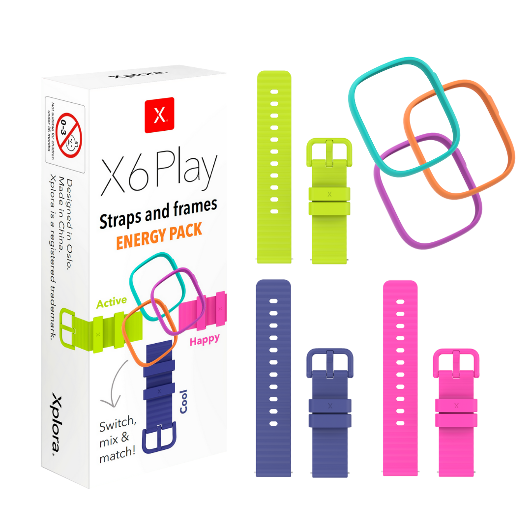 Med vores Xplora X6Play Energy Pack kan dit barn hurtigt og nemt tilpasse udseendet på sit X6Play premium smartwatch. Sættet med 3 remme, matchende remholdere og 3 beskyttende covers giver et væld af nye og flotte farvekombinationer. Byt, mix & match! – lad dine børn blande og skifte farvekombinationer på deres Xplora smartwatch, så uret bliver deres HELT eget og afspejler deres personlighed og stil. Klik på og klik af, det har aldrig været nemmere! Lad vores farvekombinationer overtage eventyret mens dine børn holder sig aktive med aktivitetsplatformen allerede i dag!