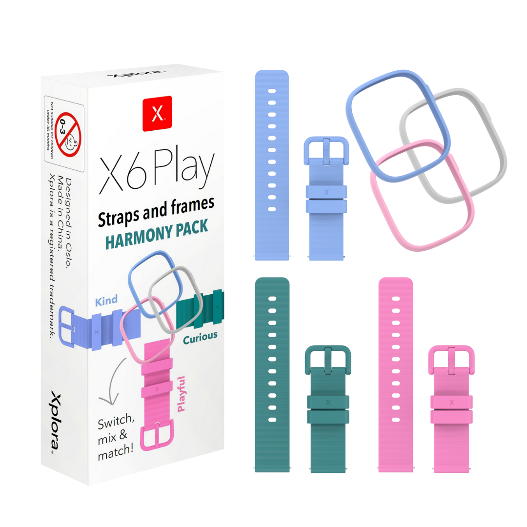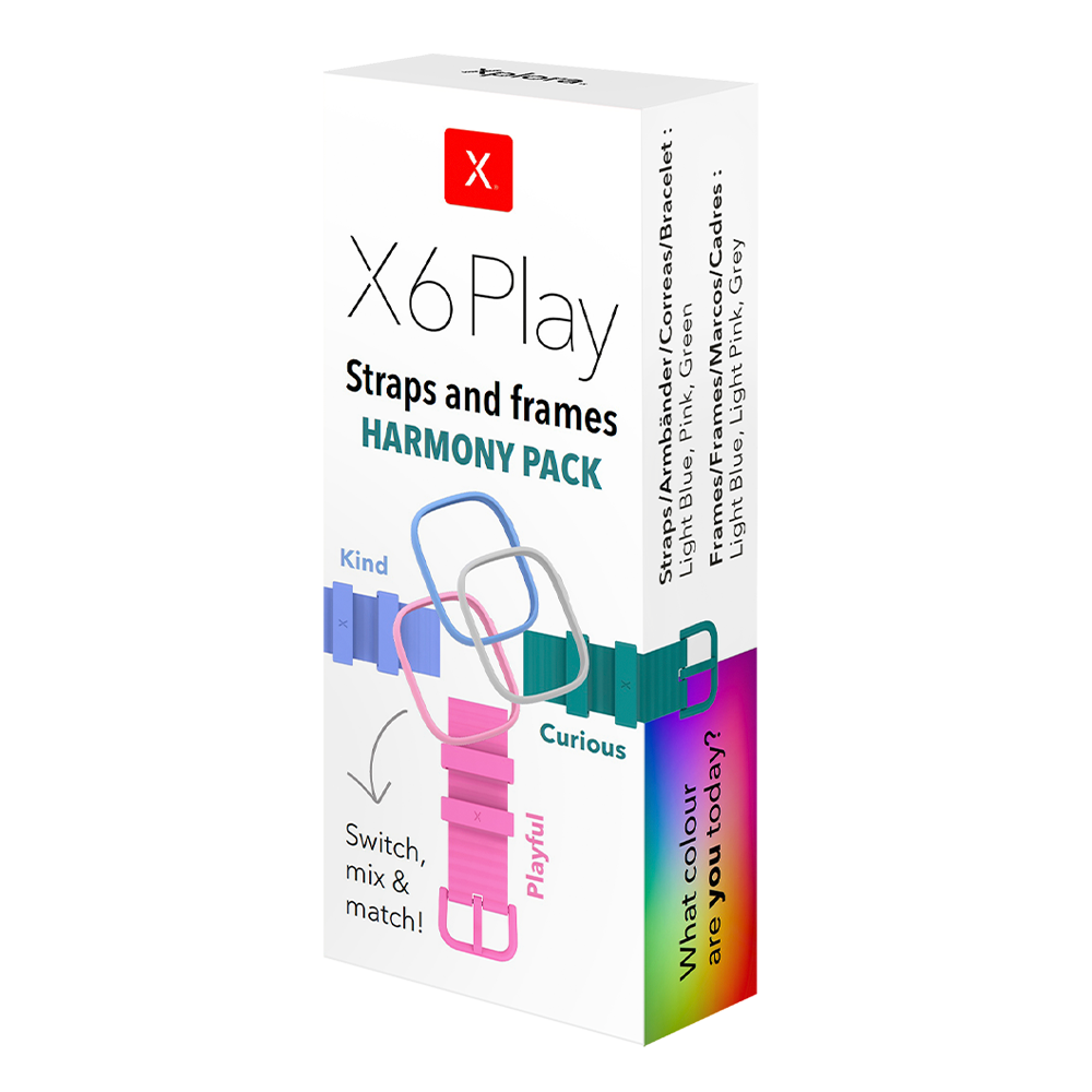 Med vores Xplora X6Play Harmony Pack kan dit barn hurtigt og nemt tilpasse udseendet på sit X6Play premium smartwatch. Sættet med 3 urremme, matchende remholdere og 3 beskyttende covers giver et væld af nye og flotte farvekombinationer. Byt, mix & match!– lad dine børn blande og skifte farvekombinationer på deres Xplora smartwatch, så uret bliver deres HELT eget og afspejler deres personlighed og stil. Klik på og klik af, det har aldrig været nemmere! Lad farverne fra byt, mix & match overtage eventyret mens dine børn holder sig aktive på aktivitetsplatformen!